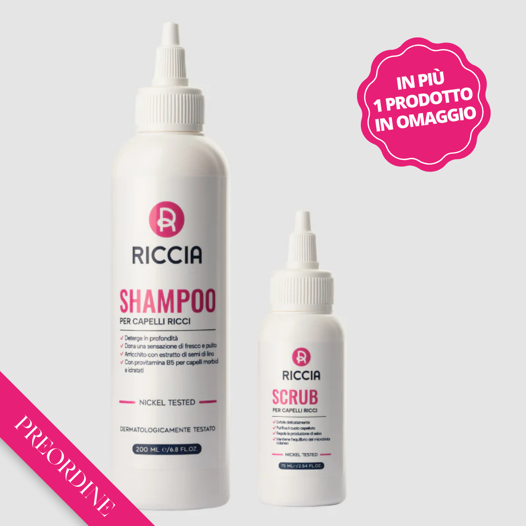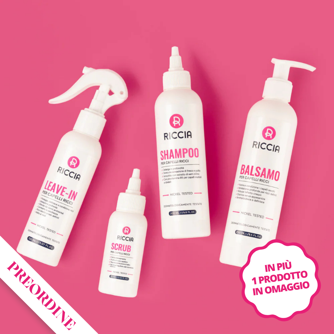 Kit Riccia completo per lavaggio composto da scrub, shampoo, balsamo, leave-in.