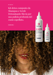 Kit detox composto da Shampoo e Scrub Detossinante Riccia per una pulizia profonda del cuoio capelluto.